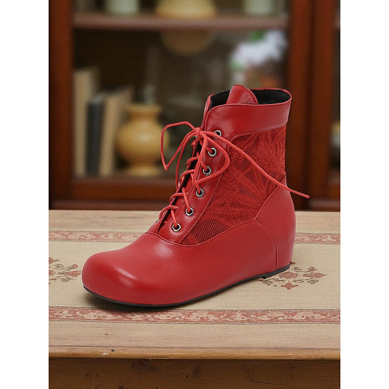 Women's Brown Faux Leather Fabric Hidden Wedge Lace-Up Ankle Boots, 1950s Vintage Shoes for Retro Outfits, Cosplay Daily Wear