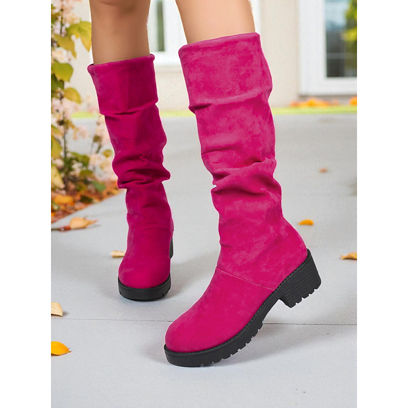 Women's Burgundy Faux Suede Slouchy Boots with Non-Slip Sole, Casual Mid Calf Boots for Christmas, Outdoor Everyday Wear