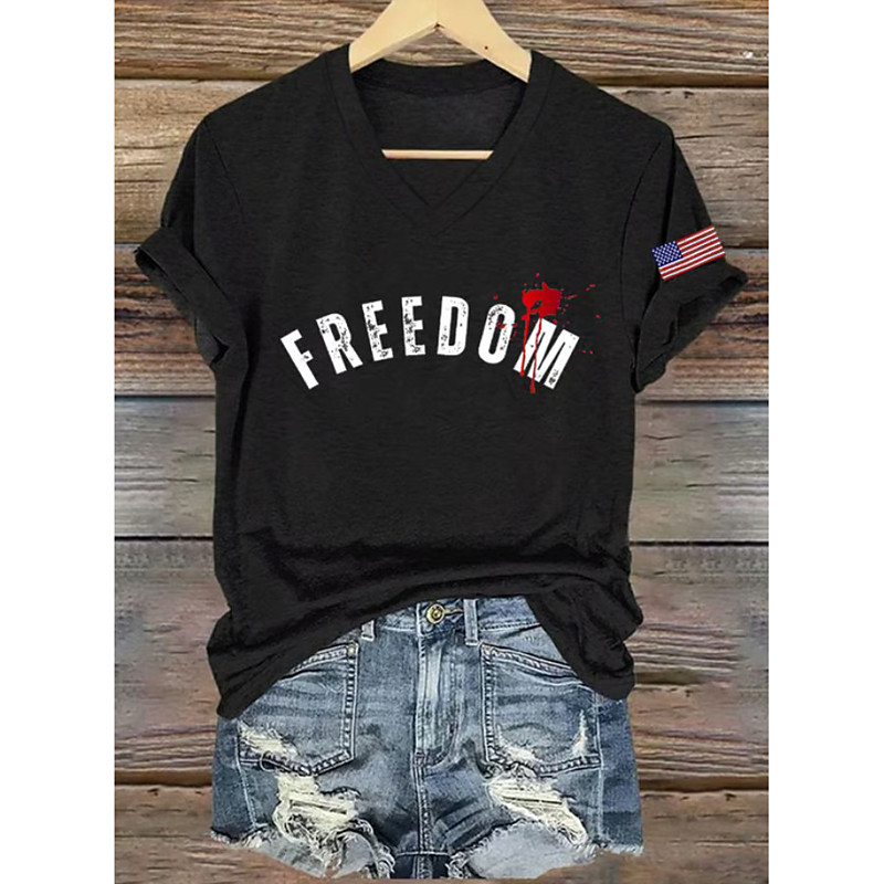 American Independence Day Women's T Shirt Graphic American Flag Vintage Stylish Ethnic Short Sleeve V Neck Regular Tops Daily Going out Beach Wear Print Blue Black White Red Gray Summer Spring