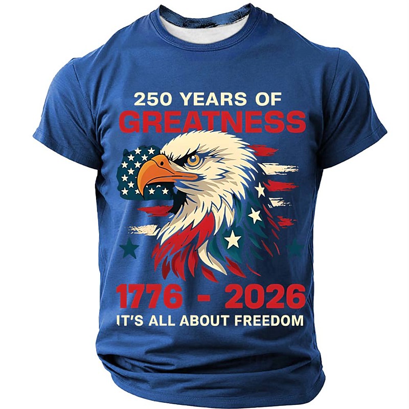 America's 250th Anniversary Men's American US Flag Eagle T Shirt Short Sleeve T shirt 3D Print Crew Neck Shirt Daily Military Daily Street Blue Heather Gray Black Summer Spring Clothing Apparel S M L