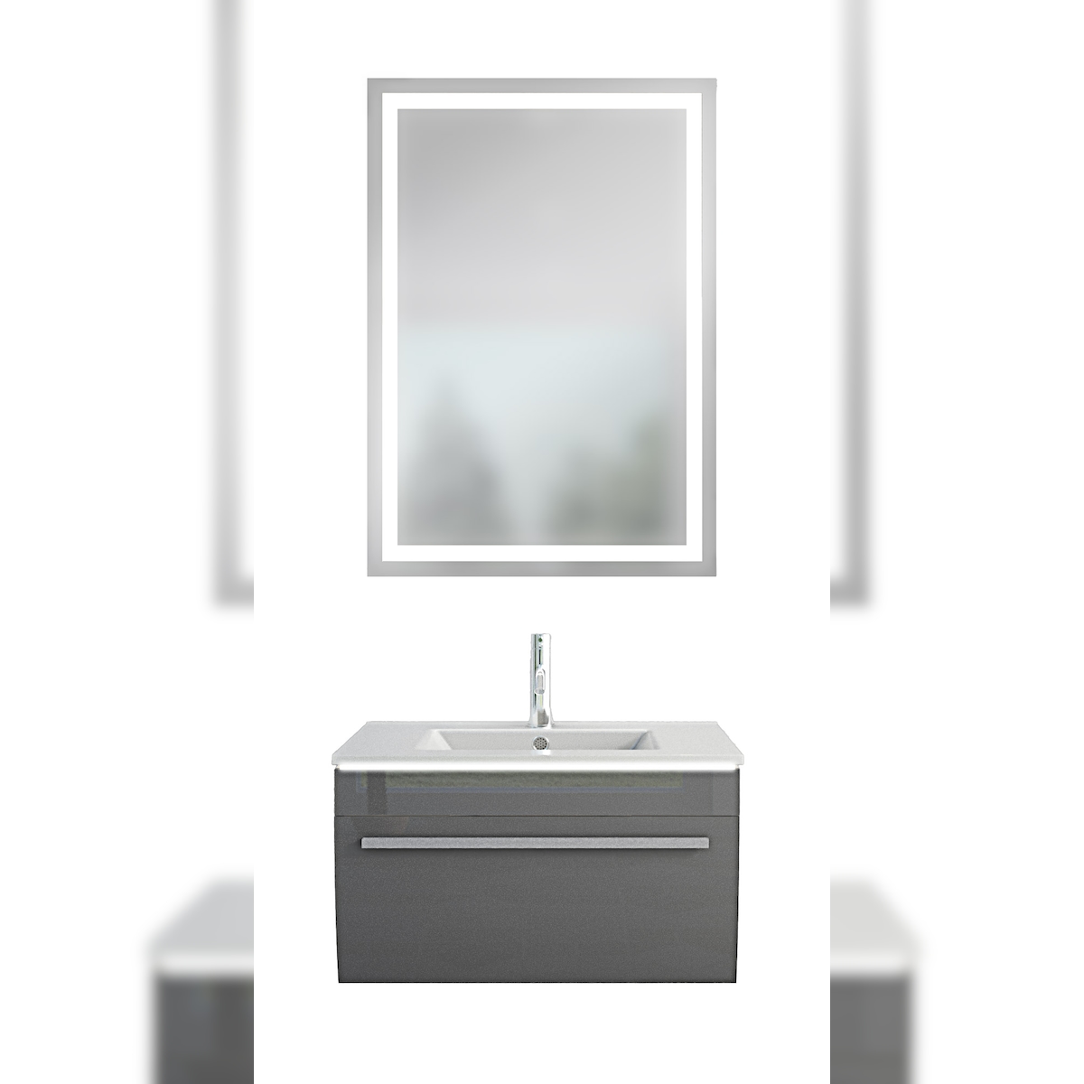 AcquaVapore Badmöbel Set Gently 3 V1 Weiß MDF Waschtisch 70cm mit Leuchtspiegel LSP03 100x70 cm