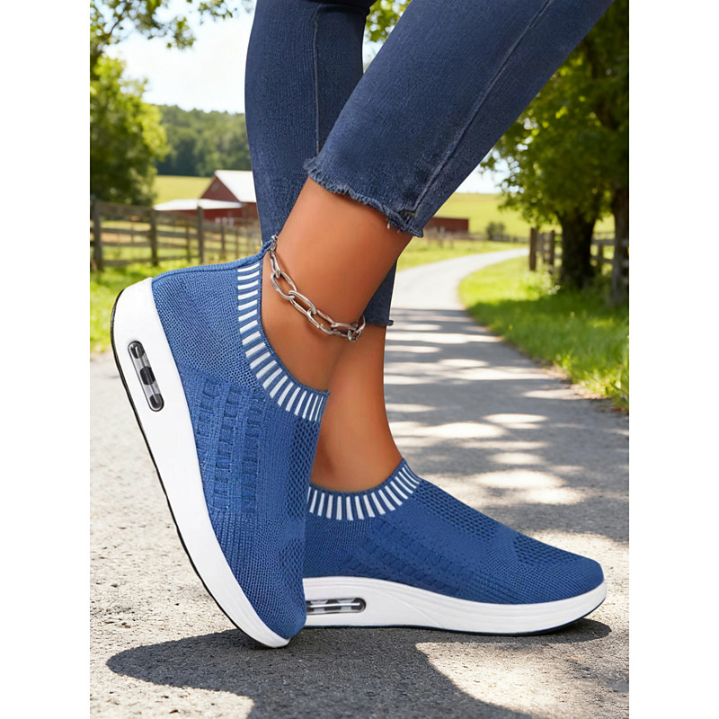 Women's White Breathable Mesh Sock Sneakers with Air Cushion – Slip-On Platform Walking Shoes for Nursing, Travel All-Day Comfort