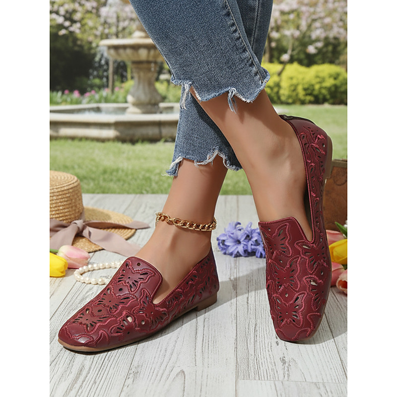 Women's Yellow Cutout Flat Shoes – Breathable Perforated Design, Vintage-Inspired Slip-On Loafers for Spring Summer, Walking, Travel, Leisure and Everyday Outfits