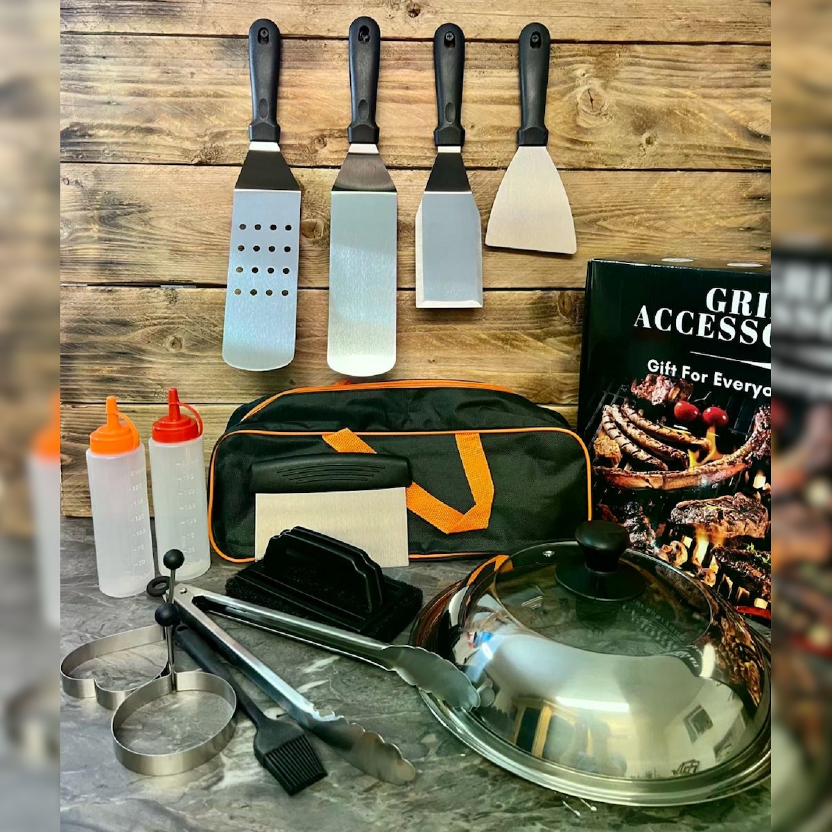 CHEFGASTRO BBQ Premium Grillbesteck | Grillzange, Grillpinzette & Wender | Edelstahl