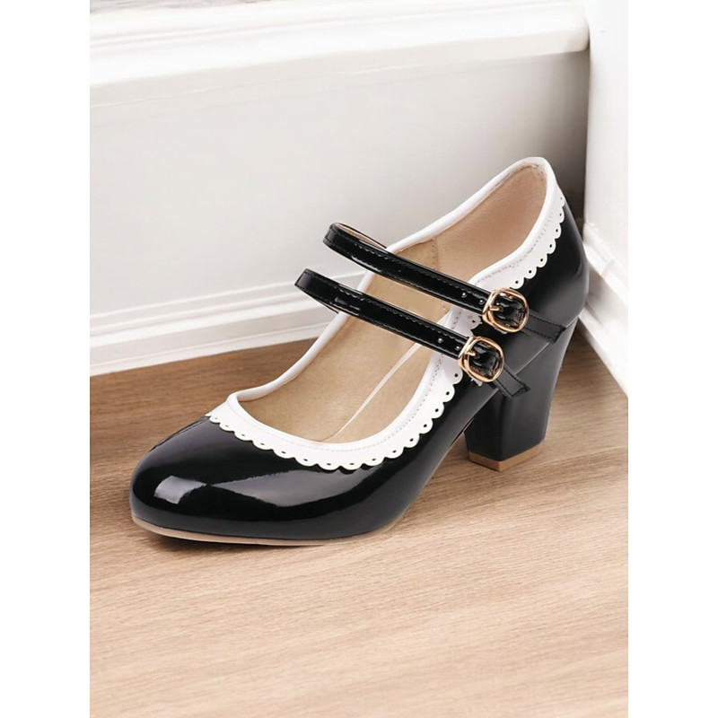Women's Brown Mary Jane Heels with Velcro Strap – Comfortable Chunky Heeled Shoes for Casual and Everyday Wear