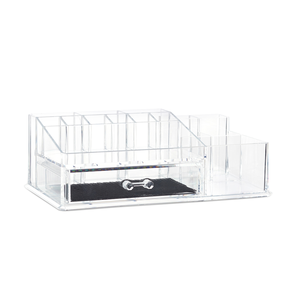 Relaxdays Make Up Organizer mit Schublade, Kosmetik Aufbewahrung für Schminke & Schmuck, Lippenstifthalter, transparent