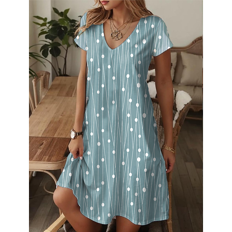 Women's Mini Dress Casual Dress Sundress A Line Dress Stylish Casual Regular Fit Graphic Geometric Long Sleeve V Neck Ice Blue Yellow Wine Dusty Blue Spring Fall
