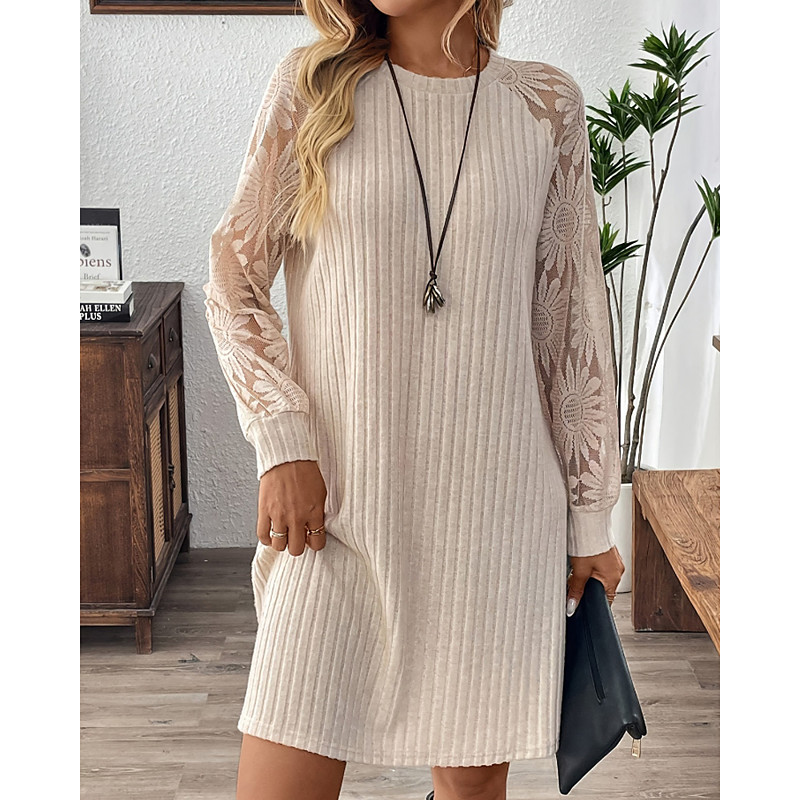 Women's Mini Dress Casual Dress Modern Daily Outdoor Vacation Regular Fit Plain Long Sleeve Crew Neck Apricot Spring Fall