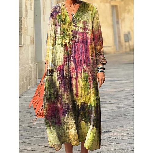 Per donna Abito Midi Vestito Estivo Abito a trapezio Vacanza Casual Boho Uscire Spiaggia Vestibilità comoda Grafico Geometrico Manica Lunga Scollo a V Rosa Blu Viola Verde Primavera Autunno Inverno