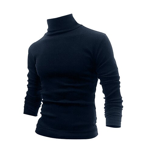Herren T Shirt T-Shirt Langarm Rollkragen Sommer Einfach Schmale Falten Mode Designer Basic Urlaub Straße Ausgehen Schwarz Weiß Marineblau Top T-Shirt für Herren