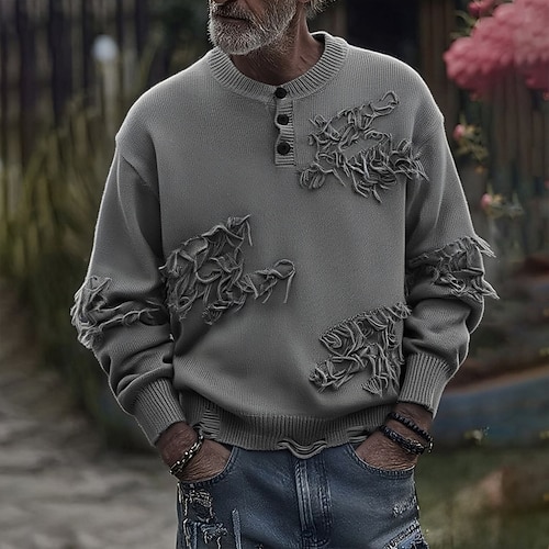 Per uomo Maglione Maglione a maglia A Coste Maglia Top Regolari Bottoni Lavorato a maglia Semplice Henley Moda Essenziale Vacanza Abbigliamento quotidiano Abbigliamento Autunno Inverno Nero Bianco S