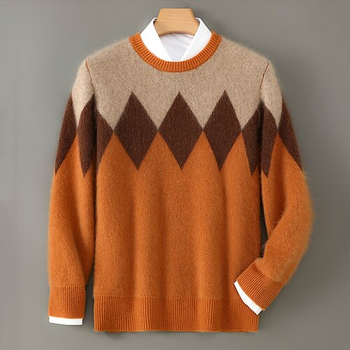 Per uomo Felpa Maglione di lana Maglione Maglione a maglia A Coste Maglia Top Regolari Lavorato a maglia Rombi Girocollo Vintage Moda Casuale Abbigliamento quotidiano Abbigliamento Autunno Inverno