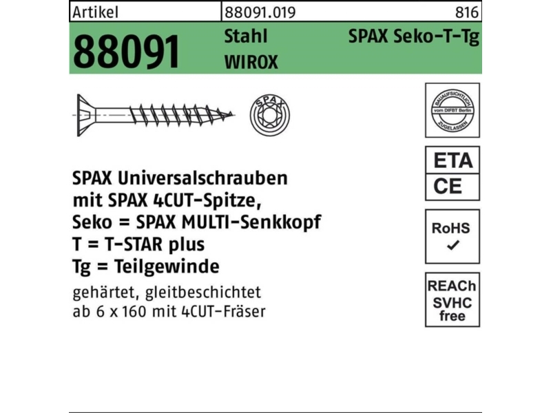 Spanplattenschraube Senkkopf Spax T-Star 6 x 50 mm TG TX30 Wirox GP