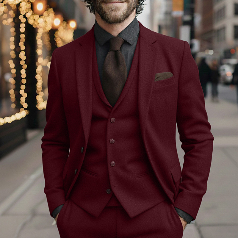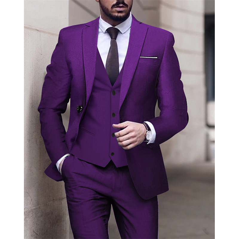 Men's Prom Wedding Suits Notch Burgundy Sage Daily Lightweight Solid Colored Tailored Fit 3 Piece Single Breasted Two-buttons