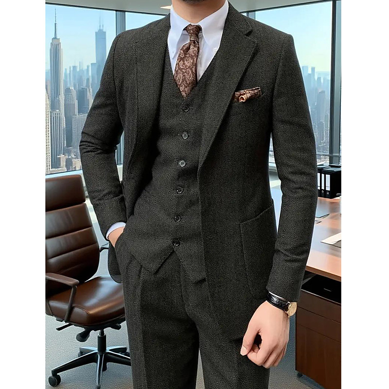 Men's BlazerVestDress Pants Blazer Suits Business Cocktail Party Wedding Party 3 Piece Fashion Casual Spring Fall Polyester Plain Pocket Buttons Comfortable Double Breasted Blazer Blue Dark Gray