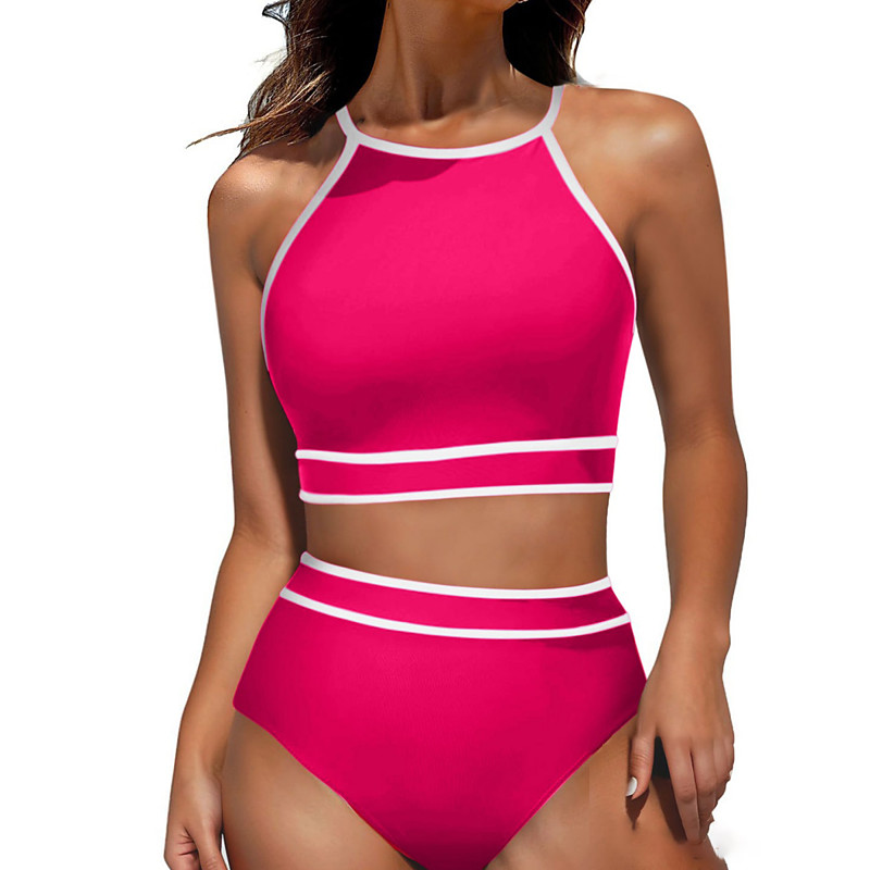 Women's Tankini 2 Piece Swimsuit Colorblock Shorts Backless Tummy Control High Waist Slim Vacation Beach Wear Color Block U Neck Sleeveless Bathing Suits