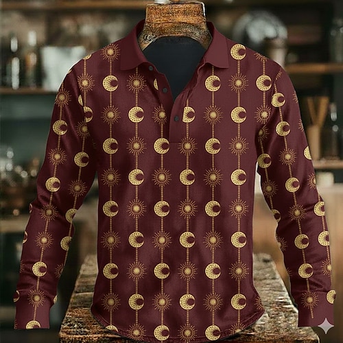 Herren Grafik Polo Langarm Polo-Shirts Revers Lässig Outdoor Athleisure Alltagskleidung 3D-Druck Knöpfe Frühling Herbst Winter Blau Purpur Braun