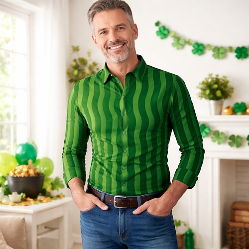 St. Patrick 2026 Retro Vintage 1970er Hemd Aloha-Hemd langarm Hippie Kostüm Herren Maskerade 4. Juli Party Festival Erwachsene Hemd