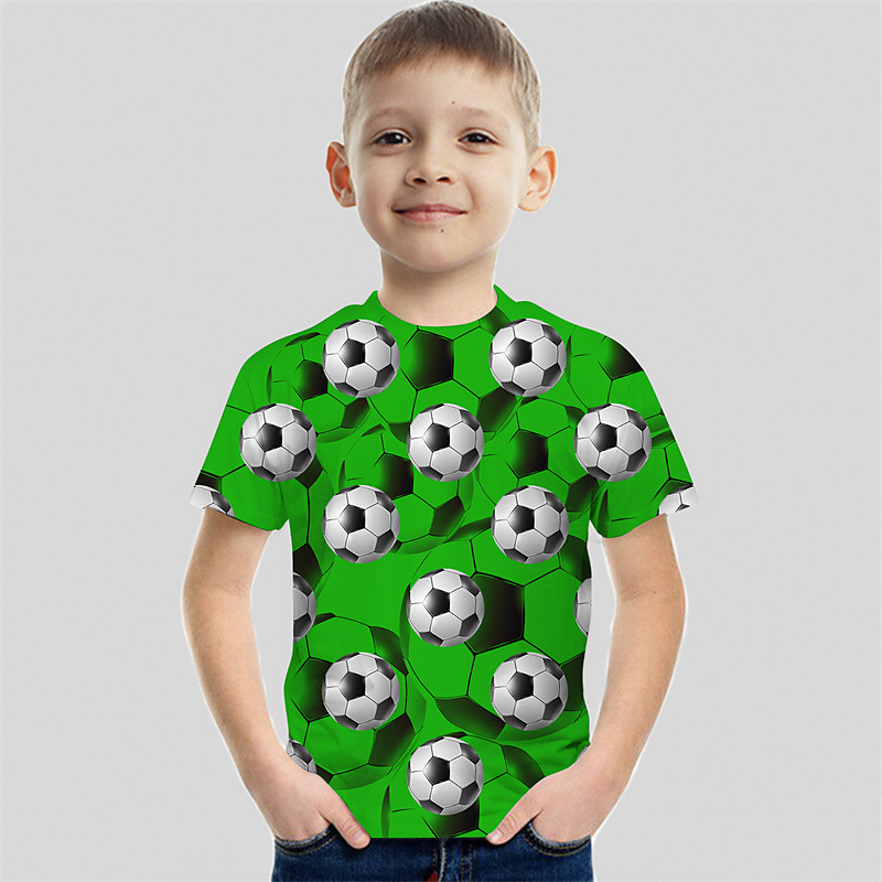 Boys 3D Football T shirt Tee Short Sleeve Summer Spring Fashion Basic Kids 4-12 Years Crew Neck Outdoor Casual Daily Regular Fit