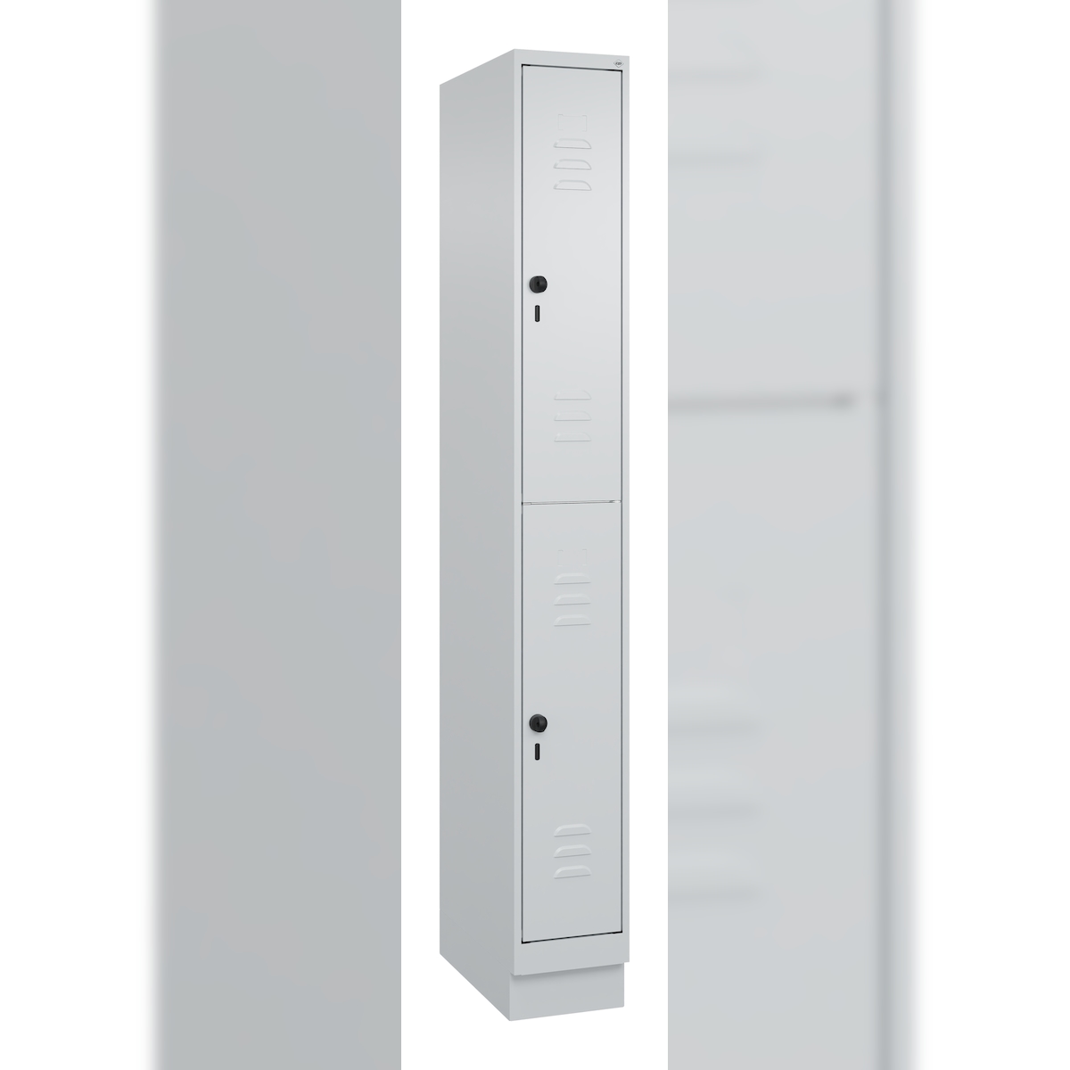 C+P Spind Classic PLUS, Sockel, 2 Abteile, HxBxT 195x25x50cm, Sicherheitsdrehriegel, Verkehrsweiß von PROREGAL