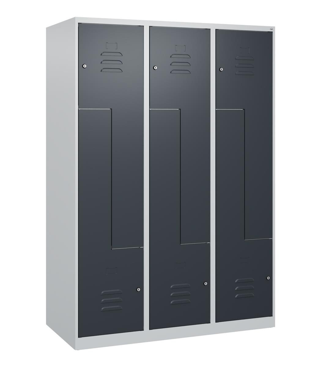 Z-Spind Classic PLUS, 3 Abteile, lichtgrau / grau, B 1200 mm, mit Füßen, Drehriegel C+P