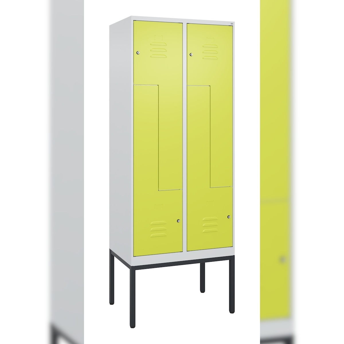 C+P Z-Spind Classic PLUS, Gestell, 4 Abteile, HxBxT 212x80x50cm, Zylinderschloss, Hellgrau/Clowngrün von PROREGAL