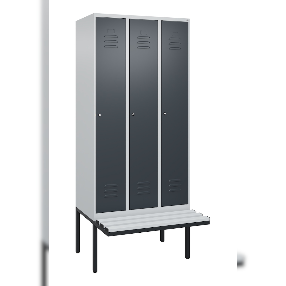 C+P Spind Classic PLUS, Kunststoff schwebende Sitzbank, 3 Abteile, HxBxT 212x90x82cm, Zylinderschloss, Hellgrau/Anthrazit von PROREGAL
