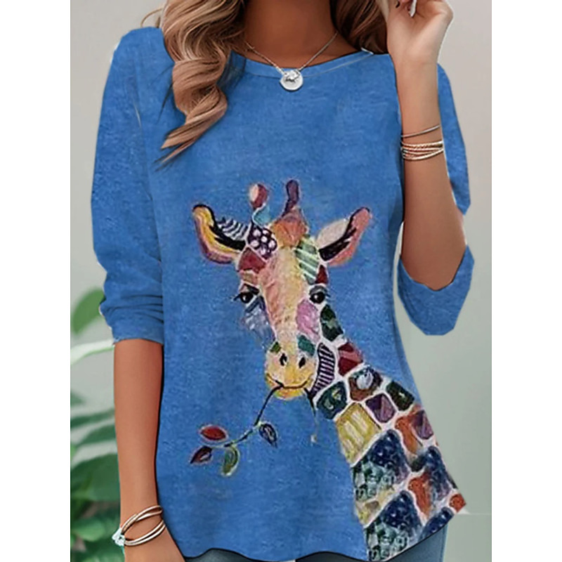Women's T Shirt Graphic Animal Fashion Classic Casual Long Sleeve Crew Neck Regular Tops Daily Weekend Vacation Wear Print Blue Summer Spring Fall