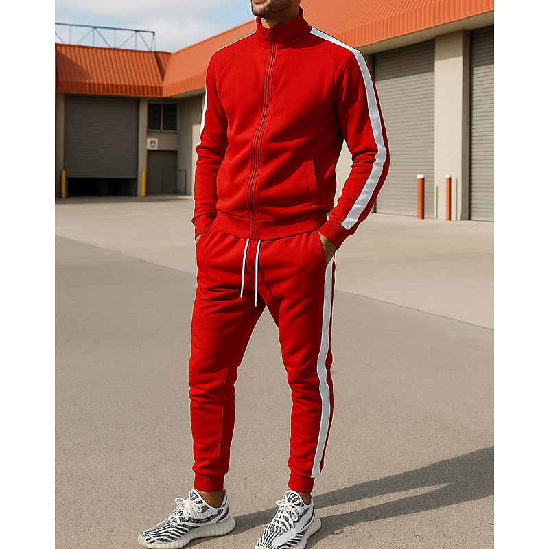 Men's Hoodie Tracksuit Full Zip Hoodie Sweatsuit Black Red Navy Blue Royal Blue Light Grey Hooded Color Block 2 Piece Sports Outdoor Daily Holiday Polyester Streetwear Basic Casual Spring Fall