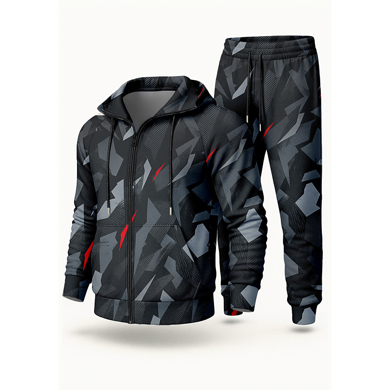 Men's Hoodie Tracksuit Activewear Set Drawstring Zip Up Geometry Clothing Suit Fall Dark Gray Vocation Outdoor Travel Lightweight Fashion Long Sleeve Sport Activewear Stretchy Regular Fit