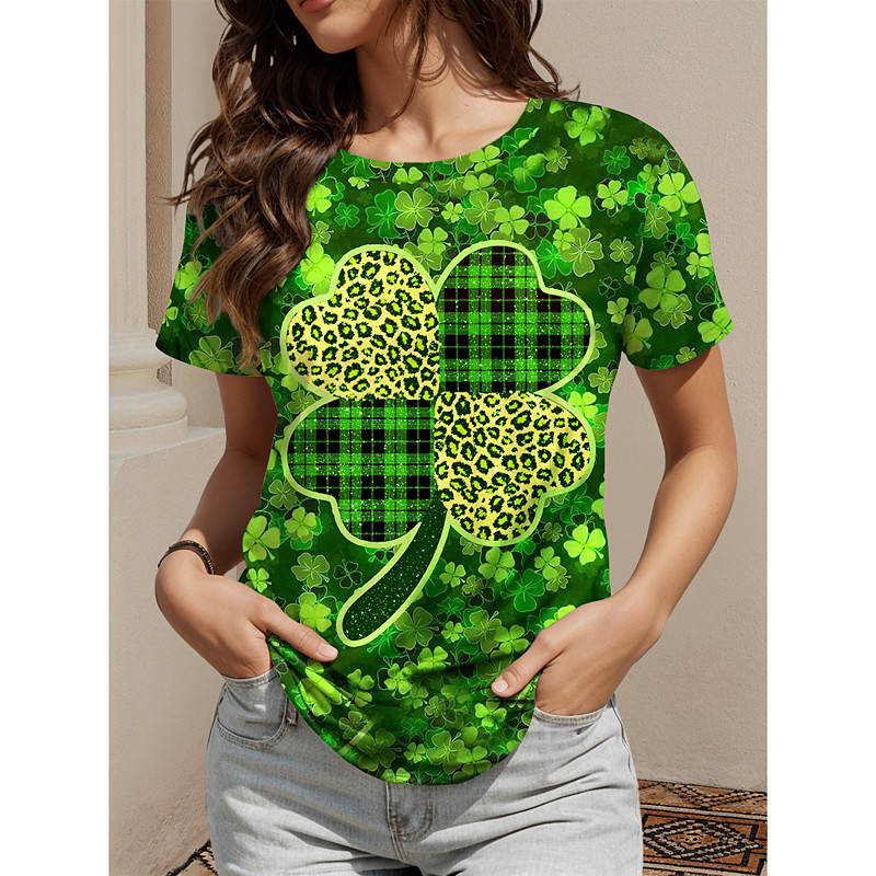 St. Patrick Women's T Shirt Casual Short Sleeve Round Neck Regular Tops Daily Print Green Summer