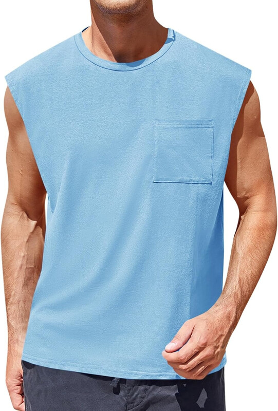 Men's Sleeveless Tank Tops Workout Cut Off Shirts MUSCLE Gym T Shirts with Pocket (blue, 3XL)