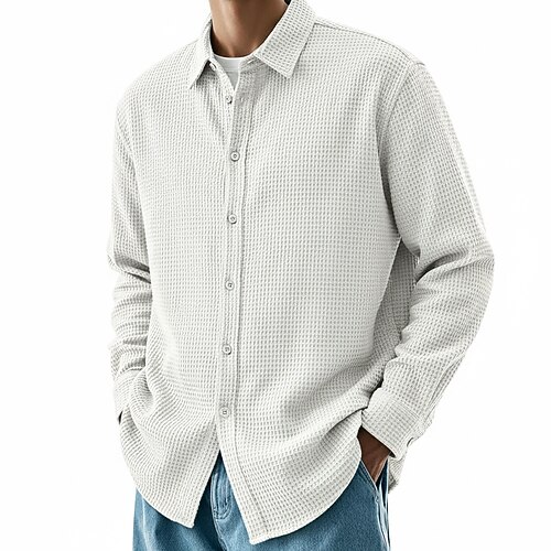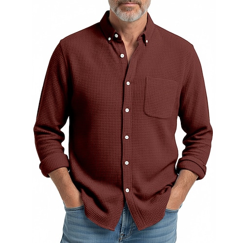 Per uomo Camicia Camicia a nido d'ape Camicia casual Camicia con Bottoni Nero Bianco Vino Blu marino Marrone Manica Lunga Semplice Bavero Casuale Quotidiano Abbigliamento Moda Streetwear