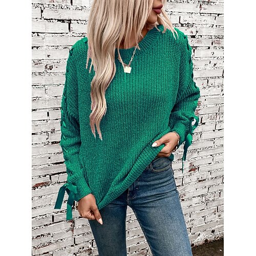 Per donna Felpa Casual Morbido Colore Puro A Coste Girocollo Patchwork Lavorato a maglia Manica Lunga Top Regolari Maglia All'aperto Quotidiano Weekend Rosa Vino Autunno Inverno