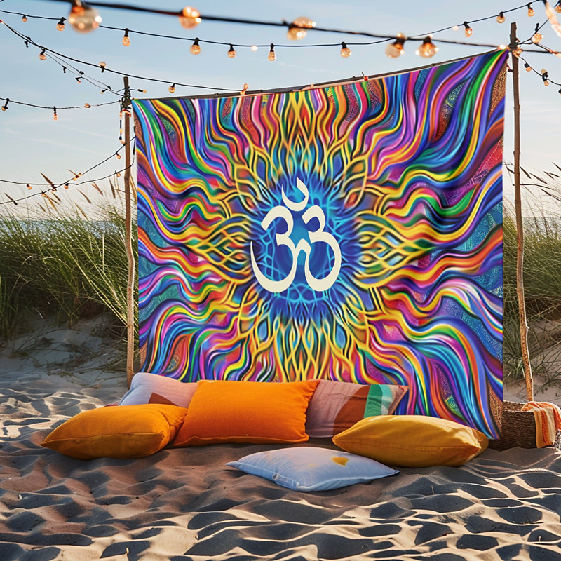Outdoor Mandala Bohemian Om Hanging Tapestry Wall Art Large Tapestry Mural Decor Photograph Backdrop Blanket Curtain Home Bedroom Living Room Decoration