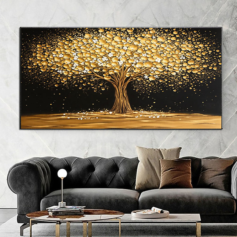 Gold Abstract Tree Painting Golden Flower Canvas Textured Painting Gold and Black Bedroom Tree Art Work Acrylic Bedroom Wall Painting