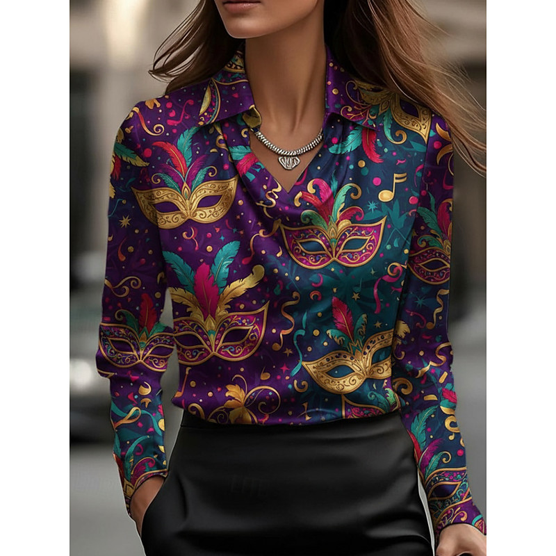 Carnival Women's Shirt Graphic Elegant Vintage Casual Long Sleeve Cowl Neck Regular Tops Daily Work Holiday Print Draped Purple Spring Fall