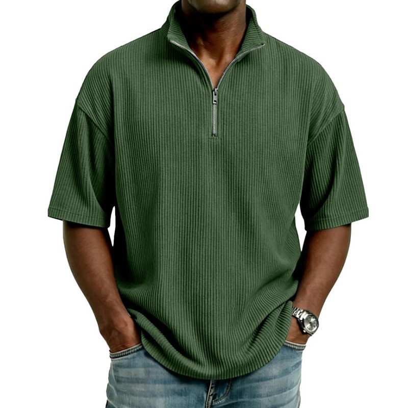 Men's Polo Corduroy Shirt Daily Outdoor Quarter Zip Short Sleeve Fashion Basic Plain Zipper Summer Tailored Fit Blue Black White Red Navy Blue Purple Polo