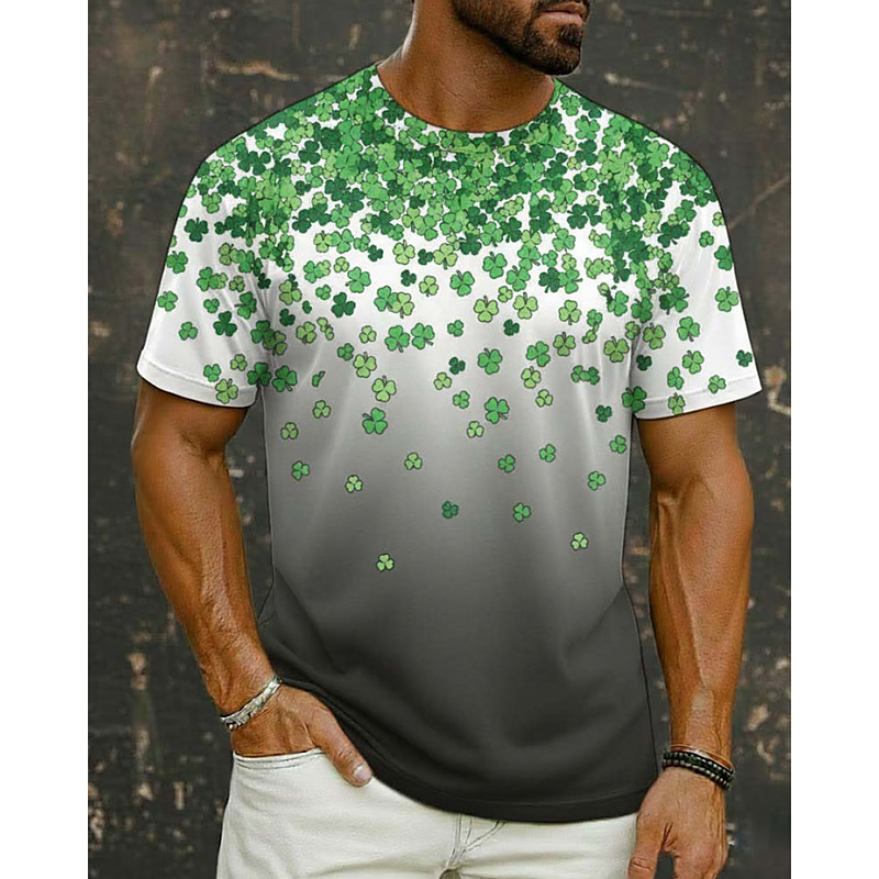 St. Patrick Men's Shamrock Lucky Irish T Shirt Short Sleeve T shirt 3D Print Crew Neck Shirt Designer Casual Party Holiday Club White Green Army Green Summer Spring Clothing Apparel S M L XL XXL XXXL