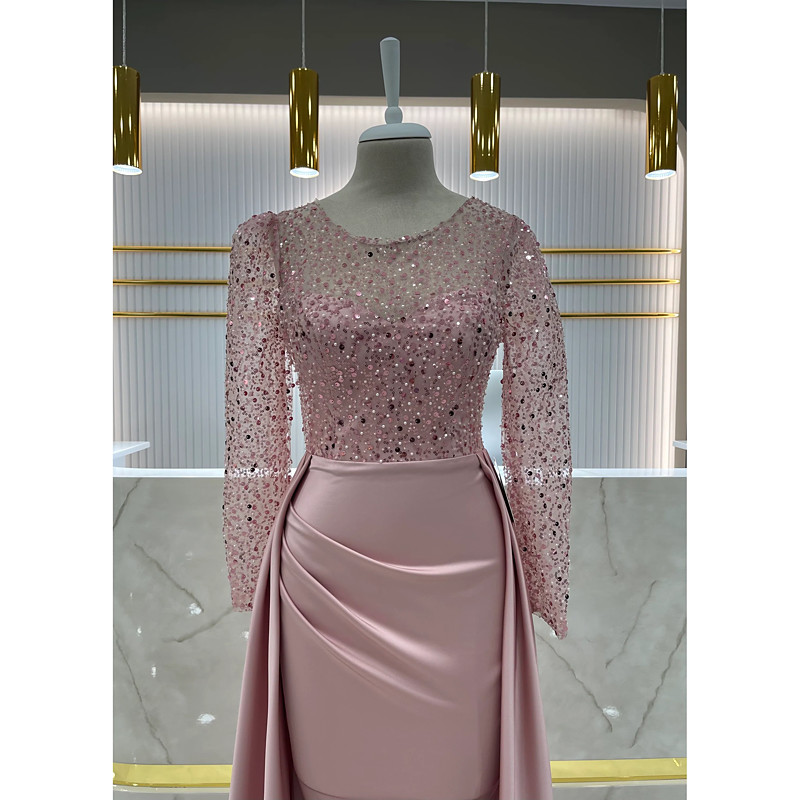 Mermaid Trumpet Floor Length Evening Gown Ball Gown with Overskirt Formal Dress Elegant Long Sleeve Illusion Neck Carnival Formal Detachable Satin Sequined with Pearls Overskirt