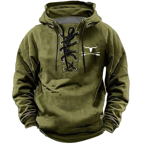 Per uomo Cowboy Felpa con Cappuccio Felpa Elegante Etnico Vintage Retrò Manica Lunga Con Cappuccio Abbigliamento casual alla moda Nero Blu Marrone Verde militare Coulisse Autunno Inverno progettista