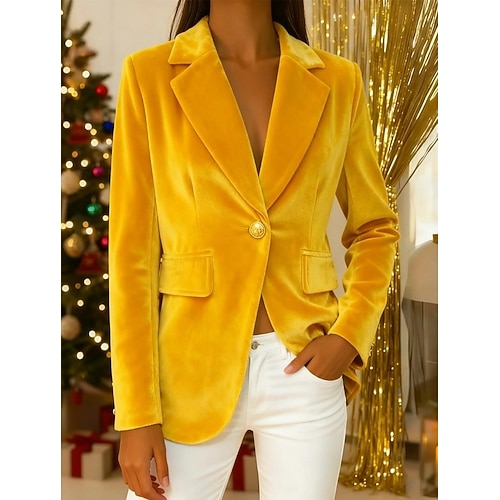 Per donna Cappotto Blazer di velluto Confortevole Aperturaanteriore Casual Semplice Vacanza Abbigliamento quotidiano Weekend Lungo Scollo a V Vestibilità comoda Manica Lunga Capispalla Nero Giallo