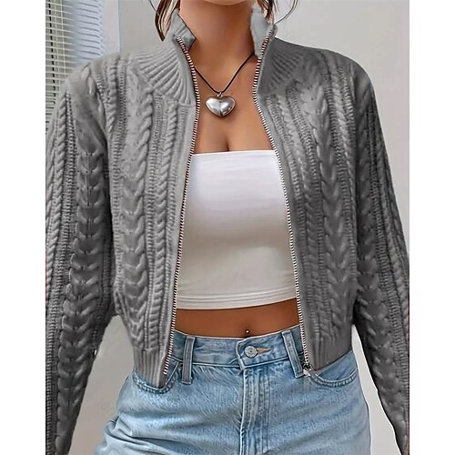 Per donna Felpa Cardigan Elegante Moda Carino Tinta unica Collo alla coreana Cerniera Lavorato a maglia Stampato Manica Lunga Top Regolari Maglia All'aperto Quotidiano Ferie Rosso bordeaux Nero