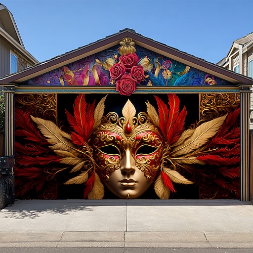 Martedì grasso Copertura per porta del garage Grande appeso Maschera Piume Lusso 3D Da serata All'aperto Sfondi di ripresa Porta d'ingresso Stile Carnevale di Venezia Arredamento per la casa