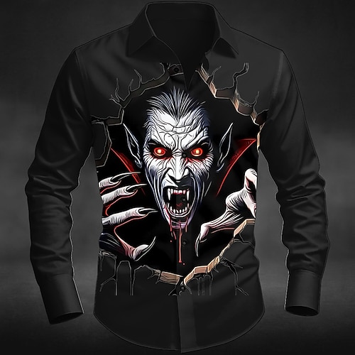 Per uomo Pagliaccio inquietante Costumi da vampiro Macchie di sangue Camicia Camicia con Bottoni Manica Lunga Gotico punk oscuro All'aperto Ferie Estate Primavera Collo ripiegato Stampa 3D camicie