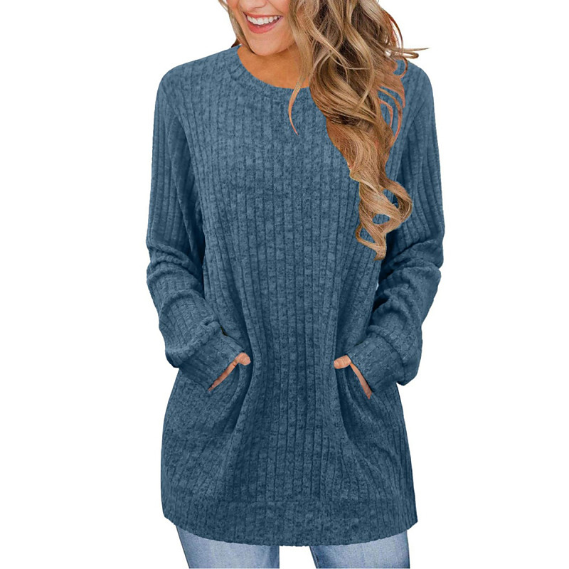 Women's Blouse Solid Color Stylish Casual Long Sleeve Crew Neck Long Tops Daily Pocket Black Blue Purple Brown Green Spring Fall Winter