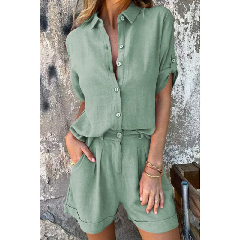 Women's Fashion Streetwear Daily Shorts Sets 3/4 Length Sleeve Shirt Collar Solid Color Casual Daily Black Purple Orange Spring Regular Fit