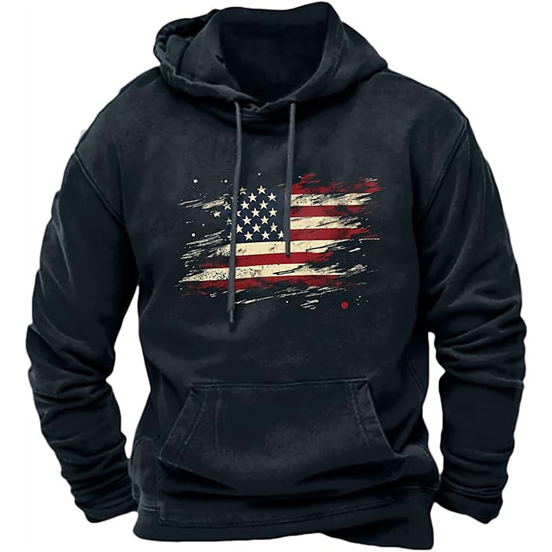 Men's Hoodie Black Navy Blue Hooded National Flag Pocket Print Sports Outdoor Daily Holiday Streetwear Basic Casual Spring Fall Clothing Apparel Hoodies Sweatshirts