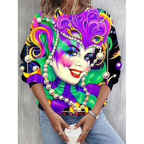 Felpa Pullover da Donna Carnival Maglietta Grafica Casual Maniche Lunghe Collo Giro Regular Tops Moda Quotidiana Nera Verde Autunno Inverno