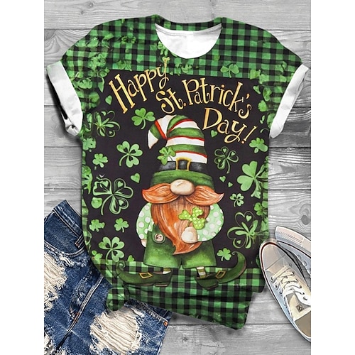 Maglietta da donna di San Patrizio Fortunata Cuore Shamrock Stile Classico Casual Maniche Corte Collo a Giro Regolari Tops Stampa Quotidiana Verde Salvia Bianca Estate Primavera